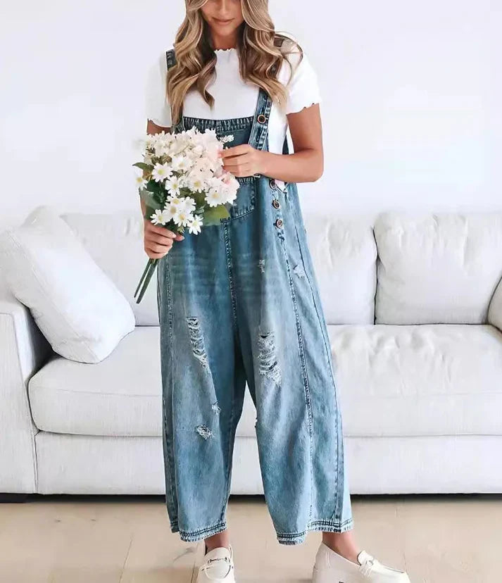 Lara™ | Mono vaquero estilo peto con detalles desgastados